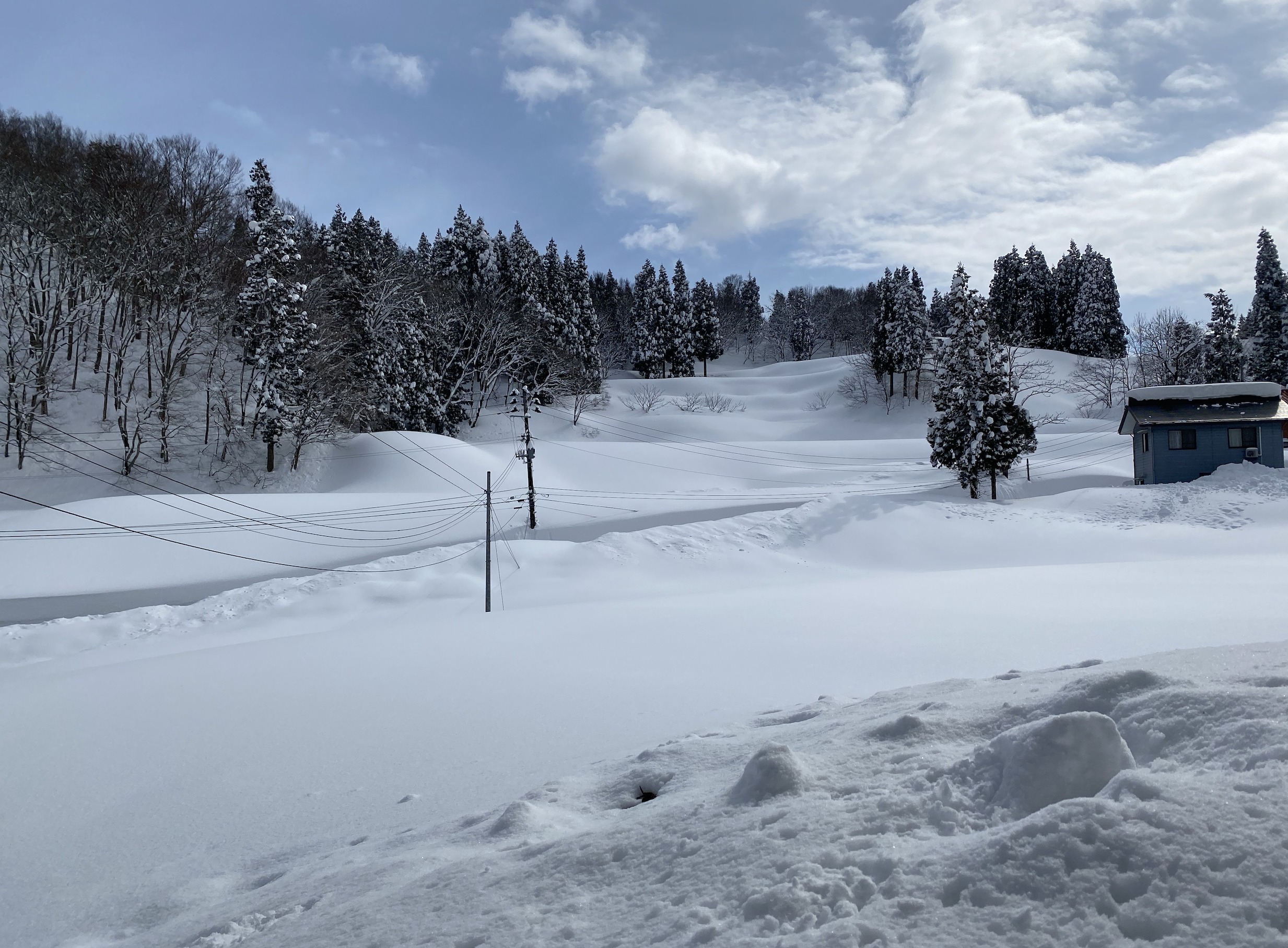 以前田んぼ作業をしていた時に集落の人が話していた昔話をふと思い出す。昔は雪の上で登校していた時に電線を跨いだもんだと。冗談のようにも聞こえたがそのときの雪の高さを思えば、決してあり得ない話ではないようにも思えた。