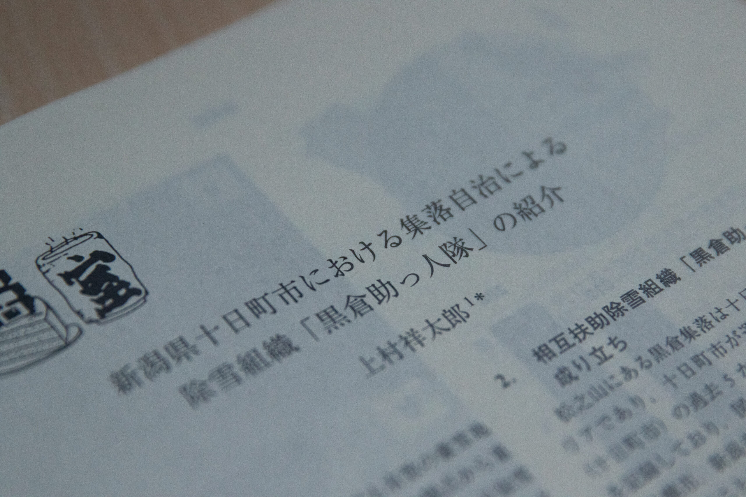 I contributed a report to Seppyo (Vol. 86, No. 1), the journal of the Japanese Society of Snow and Ice, titled “An Introduction to the Community-Based Snow Removal Organization ‘Kurokura Sukettai’ in Tokamachi City, Niigata.”